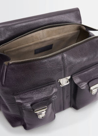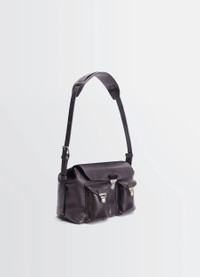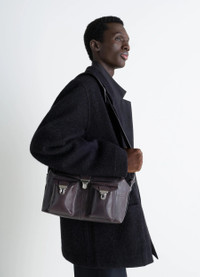 Inspired by Lemaire's utilitarian spirit, the Gear line borrows codes and details from vintage tool bags, notably its signature flap closure with metal clip clasp. This bag is made from glossy vegetable-tanned leather, LWG Gold certified. Featuring an adjustable shoulder strap and pockets, this medium bag is ideal for everyday use. DETAILS Medium Gear bag in glossy vegetable-tanned leather Elongated design with pockets Hand, shoulder, and crossbody carry Full-length, adjustable strap with metal buckle and loop Leather shoulder support Main flap and flap pockets with metal clip fasteners Embossed Lemaire logo at the back Zipped pocket at the back with metal slider and leather pull tab Zipper closure with metal slider and leather pull tab, with loop through strap Lemaire embossed interior leather label Reinforced bag bottom Silver-plated metalwork Dimensions: Length: 34 cm Height: 25 cm Depth: 16 cm Arrow height: 30 cm Strap length: 83 cm Made in Spain Style : BG0096 LL0067 FABRICS & CARE Main material: 100% cow Main lining 100% cow Do not wash Do not bleach Do not tumble dry Do not iron Professional leather clean only