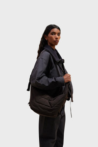 This unisex bag is a new size added to the Soft Game family. It is made of a slightly fluffy-nylon canvas treated with a water-repellent finish. This wadded fabric gives to the bag a matte surface and a sturdy structure that holds its shape over time. Inspired by the Croissant bag, the Medium Soft Game is lightweight yet functional thanks to its padded adjustable strap and its interior zipped pocket. It has the capacity for accessories such as a smartphone or a 4x7-inch book. On both side of the bag, embroidered eyelets and laces allow its volume to be adapted. Ideal for daily use, the Medium Soft Game can be worn as a shoulder or a cross-body bag. DETAILS This bag can be worn on the shoulder or cross-body Height of the shoulder strap: - Maximum 62 cm / 24 in - Average 46 cm / 18 in - Minimum 30 cm / 12 in Lining in cotton canvas Adjustable nylon strap with metal buckle Zipped opening with puller from the same fabric Interior zipped patch pocket (can contain small accessories: smartphone, wallet, card holder or Airpods Pro 2 case) Main compartment (can contain accessories: 4x7-inch book) Garment dyed Water-repellent finishes keep rain and splashes out, but are not waterproof Made in Italy Style: BG0074 LF846 FABRICS & CARE Main Material: 100% Polyamide Main Lining: 100% Polyamide Do not wash Do not bleach Do not tumble dry Do not iron Professional cleaner only