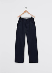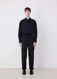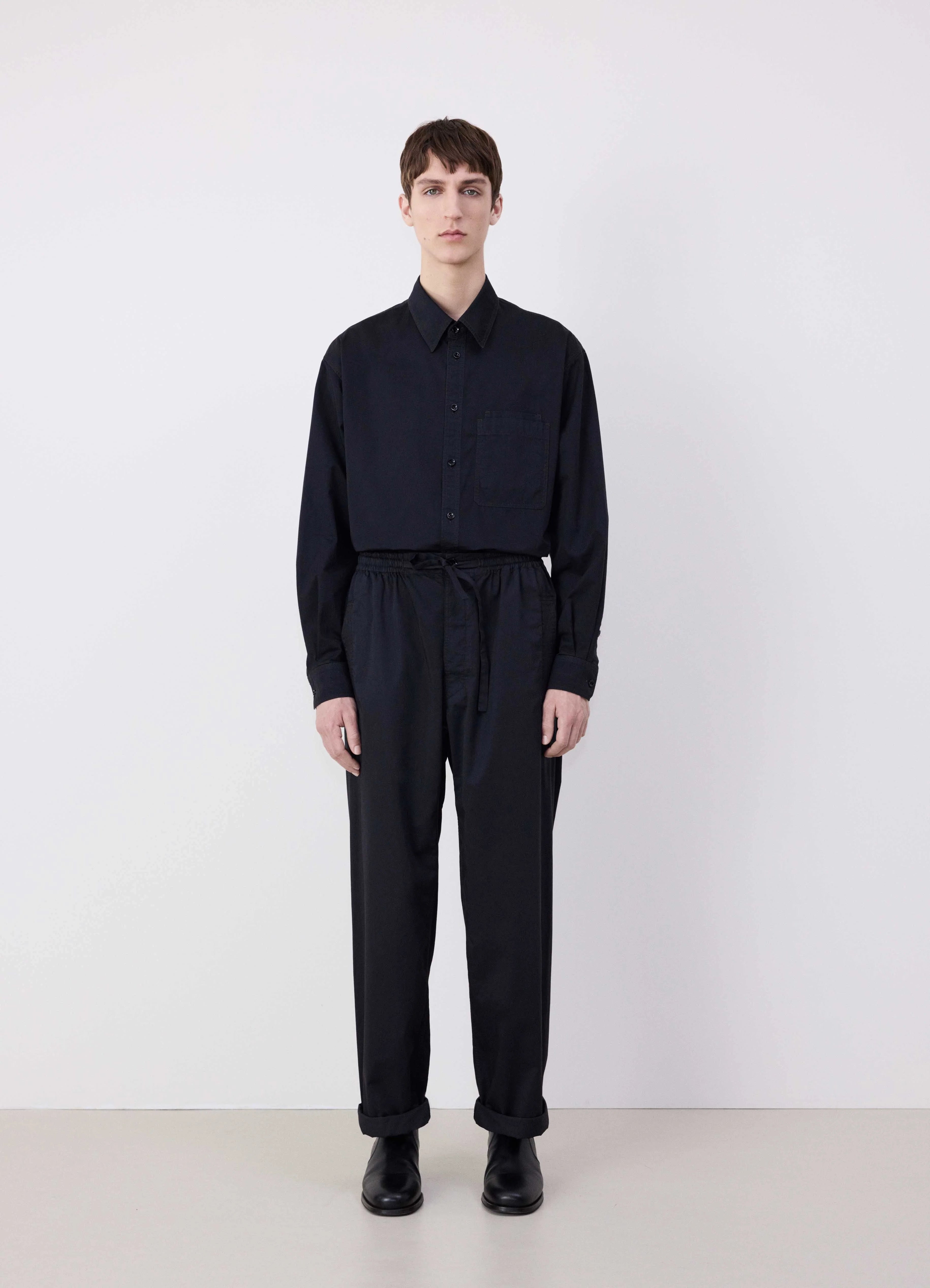 This is a new silhouette complementing the LEMAIRE vestiaire this season. The Multi-topstitch Taekwondo Pants are crafted in a light cotton and satin blend that has been delicately garment-dyed, allowing for a softer hand. There are multiple topstitching details adding lightness to the pants. Inspired by martial arts, this style features an extended pivot crotch for added mobility, two single welt pockets on the sides and a single pocket with button fly in the back. DETAILS - Oversize fit - Multi-topstitch detailing - Side welt pockets - Single back pocket Made in Romania Style: PA1157 LF1206 FABRICS & CARE Main Fabric: 100% Cotton Soft wash 30° Do not bleach Do not tumble dry Cool ironing Soft dry clean