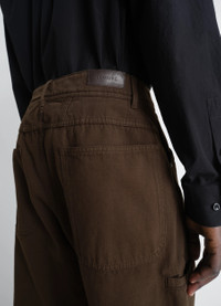 Inspired by workwear, these utility trousers play with numerous details. They are crafted from broken twill. The model is 187 cm tall and wears a size 48 (M). Inspired by workwear, these utility trousers play with numerous details. They are crafted from broken twill. The model is 187 cm tall and wears a size 48 (M). DETAILS Twisted Workwear trousers in broken twill Straight cut with twisted seams Zipped fly with double inner hook and visible metal button Side slant pockets and welt leg pocket Two back patch pockets LEMAIRE embossed leather patch at back Made in Morocco Style: PA1102 LD1068 Twisted Workwear trousers in broken twill Straight cut with twisted seams Zipped fly with double inner hook and visible metal button Side slant pockets and welt leg pocket Two back patch pockets LEMAIRE embossed leather patch at back Made in Morocco Style: PA1102 LD1068 CARE Main fabric: 100% cotton Main lining: 100% cotton Jacron patch: 100% cow leather Do not wash Do not bleach Do not tumble dry Cool ironing Soft dry clean Main fabric: 100% cotton Main lining: 100% cotton Jacron patch: 100% cow leather Do not wash Do not bleach Do not tumble dry Cool ironing Soft dry clean