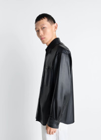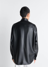 This overshirt has a relaxed, modern cut and is crafted from lightweight lamb nappa leather. The model is 187 cm tall and wears a size 48 (M). This overshirt has a relaxed, modern cut and is crafted from lightweight lamb nappa leather. The model is 187 cm tall and wears a size 48 (M). DETAILS Overshirt in lamb nappa leather Relaxed fit Spread collar Button closure Long sleeves with buttoned cuffs Double chest pockets LEMAIRE embossed leather patch inside neckline Made in Turkey Style: SH1230 LL0161 Overshirt in lamb nappa leather Relaxed fit Spread collar Button closure Long sleeves with buttoned cuffs Double chest pockets LEMAIRE embossed leather patch inside neckline Made in Turkey Style: SH1230 LL0161 CARE Main fabric: 100% cow leather Second fabric: 100% cupro Do not wash Do not bleach Do not tumble dry Do not iron Professional leather clean only Main fabric: 100% cow leather Second fabric: 100% cupro Do not wash Do not bleach Do not tumble dry Do not iron Professional leather clean only