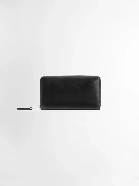 Highlighting LEMAIRE's commitment to leather craftsmanship, this season sees the debut of the Patina Zipped line, crafted in a soft black leather with a subtle shine. This Patina Zip Continental rectangular wallet zips open to reveal two gusset compartments offering ample storage space, twelve card slots and a zipped coin pocket to secure change. It is lined with leather and comes with a signature zip puller. DETAILS - Handmade - 2 compartments - 12 card slots - Zipped coin pocket - Branded puller with leather tab - Leather lining Zipped closure Made in Spain Style: SL0038 LL0132 FABRICS & CARE Main Fabric: 100% Cow Main Lining: 100% Cow Do not wash Do not bleach Do not tumble dry Do not iron Professional leather clean only