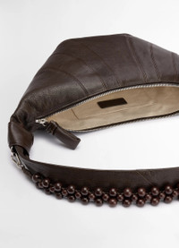 The iconic Croissant bag gets a makeover this season with the debut of this Pearls Medium Croissant style. Made in finely grained leather with a textured finish and a soft hand, it features two straps: a classic leather one, and an extra strap ornated with voluminous beads. This decorative strap can either be worn over the shoulder or left hanging below the main body of the bag for a more dramatic effect. Inspired by the shape of the eponymous pastry, the Croissant silhouette is achieved through an assembly of top-stitched cutouts, blending style and functionality. It features a matching looped zip puller and side knot finishings and has the capacity for accessories such as a smartphone or 4x7-inch book. This versatile style can be worn over the shoulder or cross-body. DETAILS - This bag can be worn on the shoulder or cross-body - Height of the shoulder strap: 43cm / 17in - Length: 16cm / 6in - Width: 35cm / 6in - Depth: 5cm / 2in - Lining in cotton canvas - Metal Looped zip puller - Interior patch pocket (can contain card holder, Airpods Pro 2 case, keys or wallet) - Main compartment (can contain a smartphone, Air or 4x7-inch book) - Side knot finishings - Embossed logo inside Made in Spain Style: BG0158 LL095 FABRICS & CARE Main Material: 100% Buffalo Second Material: 100% Polyester Main Lining: 100% Cotton Do not wash Do not bleach Do not tumble dry Do not iron Professional leather clean only