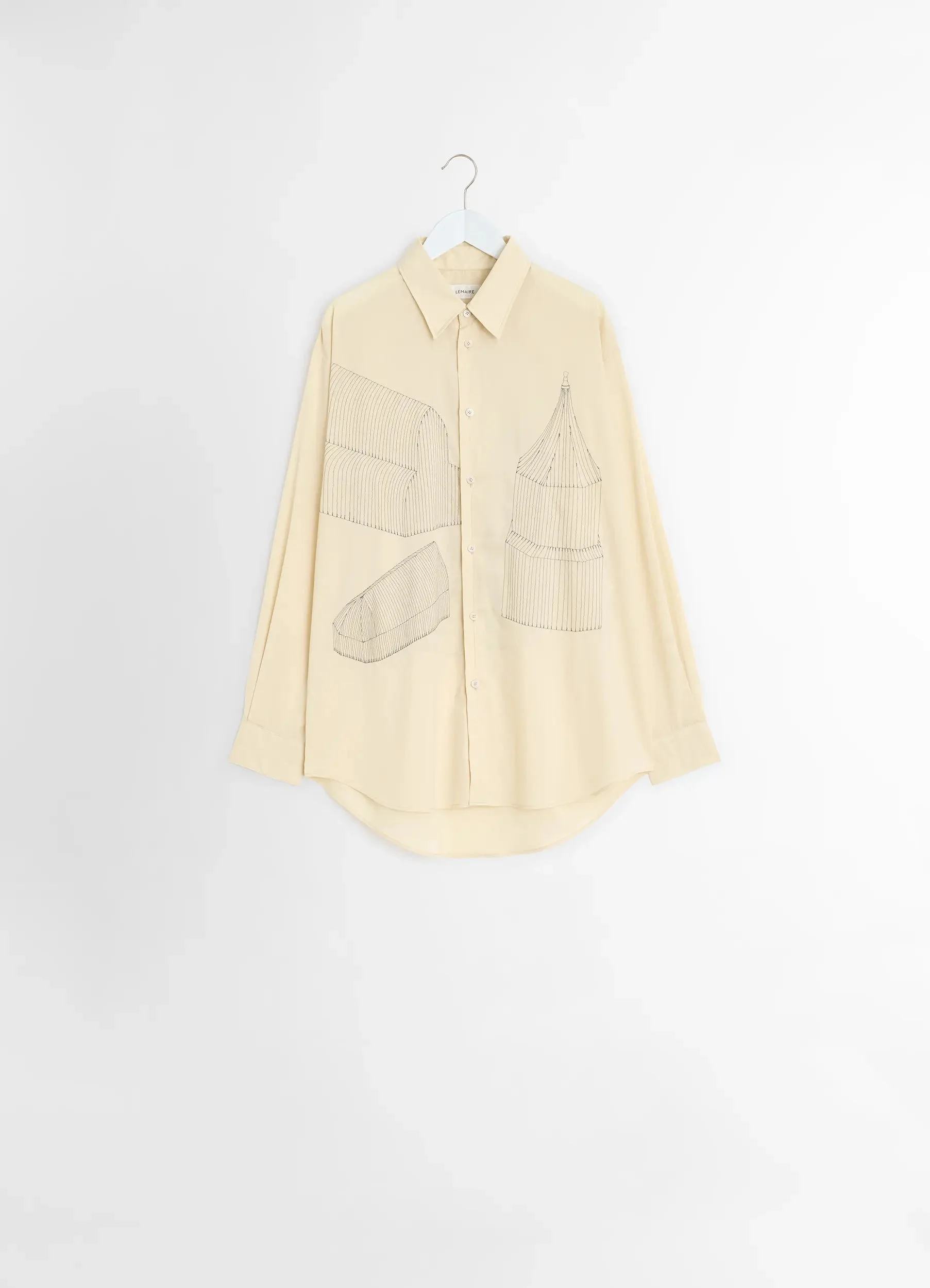 This loose-fit, unisex shirt stems from the artistic dialogue between LEMAIRE and Philippe Weisbecker. It is crafted from lightweight washed cotton poplin with a soft hand and a satin-like texture. It features an embroidered motif inspired by the work of the artist. This drapey style boasts ample sleeves which button at the cuffs via a contrasted topstitched placket, a signature LEMAIRE detail also present alongside the front fastening system. DETAILS - Loose fit - Double patch pocket - Mother-of-pearl buttons - Contrast stitching detail - Button placket Made in Portugal Style: SH1164 LF1389 The Models are 177cm / 5'9½'' ft and 187cm / 6'1½'' ft and are wearing sizes 36 (S) and 48 (M). FABRICS & CARE Main Fabric: 100% Cotton Do not wash Do not bleach Do not tumble dry Cool ironing Soft dry clean Discover the traceability
