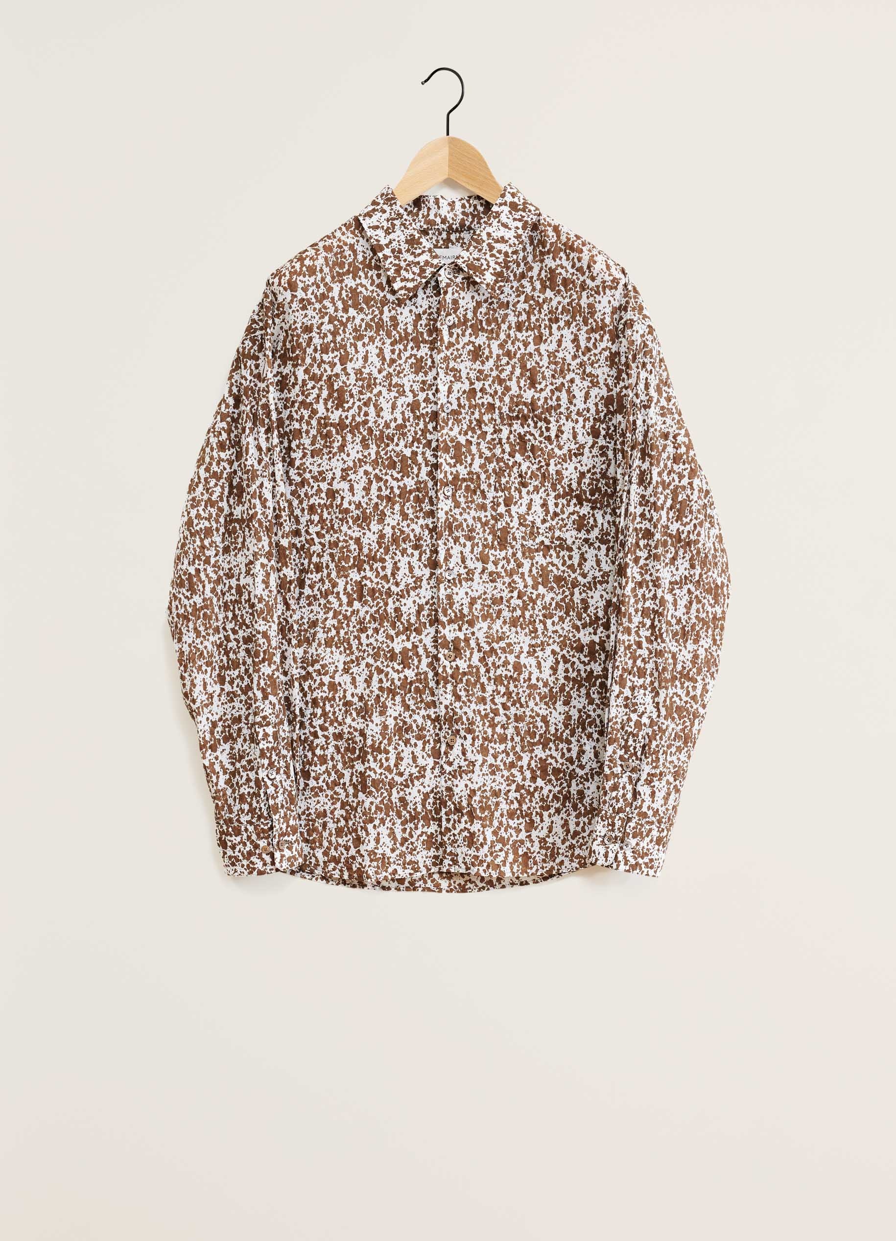 This shirt is a new addition to LEMAIRE’s wardrobe. It is made in a cotton with a smooth hand on which a camouflage pattern has been printed, bringing a new kind of fluidity to the collection. The Regular Shirt also features one chest pocket, a classic collar and adjustable angled cuffs. DETAILS Classic collar One pocket on the chest Adjustable angled cuffs Camouflage pattern Made in Portugal Style: SH1095 LF1242 FABRICS & CARE Main Material: 100% Cotton Soft wash 30° Do not bleach Do not tumble dry Cool ironing Soft dry clean