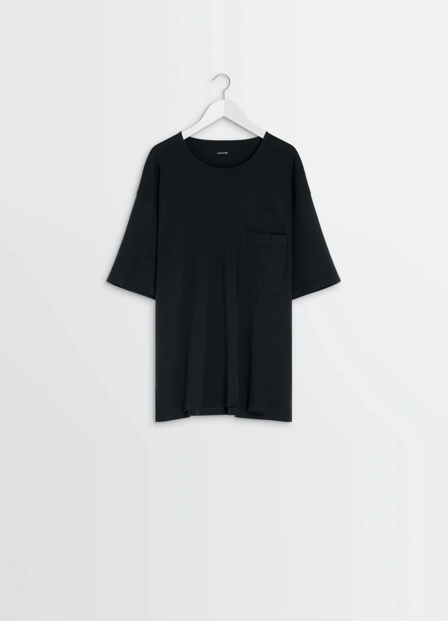 This casual short-sleeved t-shirt is a Lemaire wardrobe essential. It Is made from a cotton and silk-blend interlock jersey. DETAILS Relaxed t-shirt in cotton silk-blend interlock jersey Straight cut Crewneck Short sleeves Chest patch pocket Made in Portugal Style : TO1457 LJ1043 The models are 177 cm and 187 cm and are wearing sizes 36 (S) and 48 (M). FABRICS & CARE Main Material: 80% Cotton 20% Silk