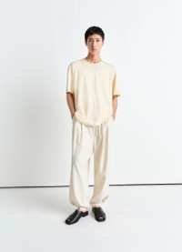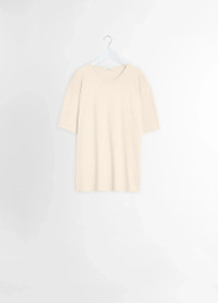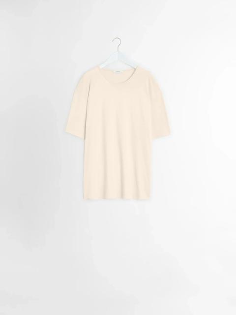 This Relaxed T-Shirt is a classic from the LEMAIRE vestiaire. It is made in light cotton jersey that has been mercerised, granting a silky sheen to the piece. This T-shirt features an open crew neck. Rib finishing at the sleeves and hem create small gathers. DETAILS - Relaxed fit - Round neck - Short sleeves Made in Portugal Style: TO1335 LJ1018 FABRICS & CARE Main Fabric: 100% Cotton Soft wash 30° Do not bleach Do not tumble dry Cool ironing Do not dry clean Dry flat