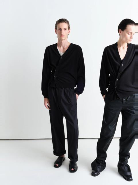 Part of the Twisted family emblematic of the Lemaire wardrobe, this casual cardigan features an asymmetrical button placket that closes at the side seam, wrapping around the waist. It is knitted in a blended merino wool that is both dry and soft.The models are 177 cm and 187 cm and are wearing sizes 36 (S) and 48 (M). DETAILS Relaxed Twisted cardigan in merino wool blend V-neck Button closure Side buttons for asymmetrical closure Long sleeves Rib-knit trim Made in Portugal Style : TO1082 LK087 FABRICS & CARE Main Material: 50% Acrylic 50% Wool