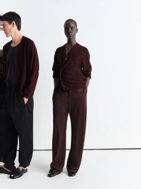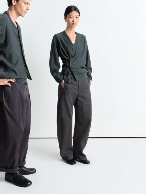 Part of the Twisted family emblematic of the Lemaire wardrobe, this casual cardigan features an asymmetrical button placket that closes at the side seam, wrapping around the waist. It is knitted in a blended merino wool that is both dry and soft.The models are 177 cm and 187 cm and are wearing sizes 36 (S) and 48 (M). DETAILS Relaxed Twisted cardigan in merino wool blend V-neck Button closure Side buttons for asymmetrical closure Long sleeves Rib-knit trim Made in Portugal Style : TO1082 LK087 FABRICS & CARE Main Material: 50% Acrylic 50% Wool