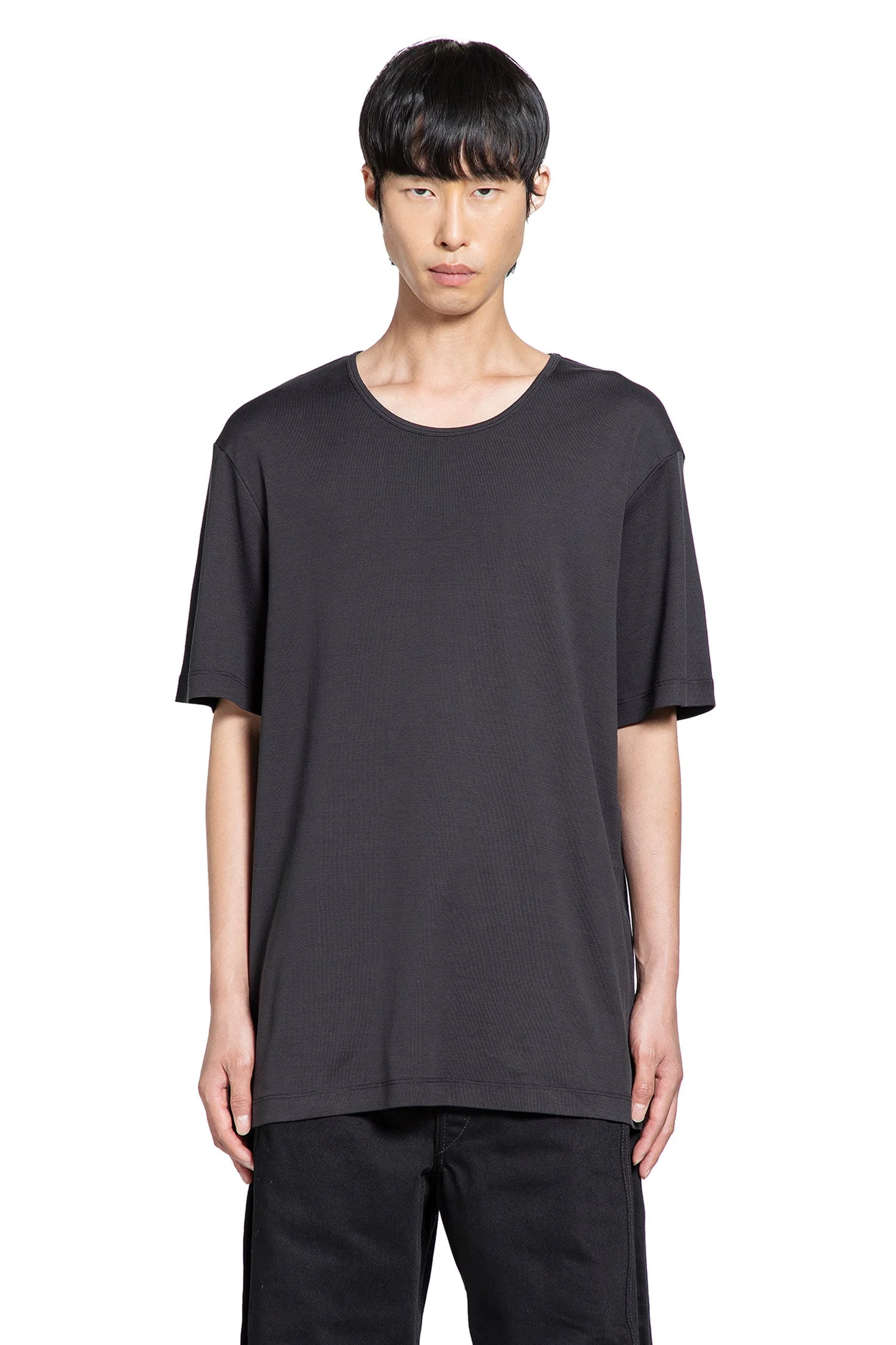 DESCRIPTION - Squid ink - Midweight cotton rib jersey - Round neck - Dropped shoulders - Short sleeves - Twin needle stitched hem and cuffs - Relaxed fit DETAILS - Made in: Portugal - Composition: 100% Cotton - Model code: TO1109LJ1016 BK998 - Item ID: 9764845224278 SIZE & FIT Model wears size M Model Height 188 cm Chest 88 cm Waist 69 cm Hips 88 cm
