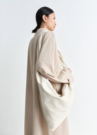 One of the most iconic LEMAIRE style, the Scarf bag is crafted from smooth nappa leather with a shiny finish for a soft touch. Imagined as a continuity of the silhouette, this supple bag is designed as a "trompe l’oeil" as a nod to an oversized foulard. A small inside patch pocket and a large compartment, both zipped, give a practical feel to the bag which can welcome all the daily essentials from small accessories such as a card holder or a wallet to daily objects like a 11x18 cm/4x7-inch book, a smartphone or a 13-inch laptop computer. A twisted strap allows the Scarf bag to be worn on the shoulder or cross-body. DETAILS - This bag can be worn around the neck, on the shoulder or cross-body. - Height of the twisted strap: 65cm / 25,6in - Length: 77cm / 30,3in - Width: 46cm / 18,1in - Depth: 1cm / 0,4in - Long zipped closure - Knotted leather puller - Internal zipped flap pocket (can contain small accessories: card holder or a wallet) - Main Compartment (can contain accessories such as a smartphone, a 11x18cm/4x7in book or a 13-inch laptop computer) - Engraved logo Made in Spain Style: BG0078 LL0075 FABRICS & CARE Main Material: 100% Sheep Main Lining: 100% Sheep Do not wash Do not bleach Do not tumble dry Do not iron Professional leather clean only
