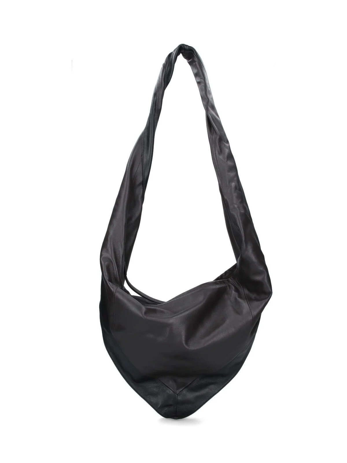 LEMAIRE 'SCARF' SHOULDER BAG IN BLACK LEATHER WITH ZIP CLOSURE, SHOULDER STRAP, TRIANGULAR DESIGN, INNER ZIP POCKET, SINGLE MAIN INNER COMPARTMENT. PRODUCT INFO PRODUCT CODE BG0188 LL0075MU096 COMPOSITION: 100% LEATHER SIZE AND FIT: H 38 X W 50 X D 4 CM MADE IN: SPAIN - STRAP DROP: 30 CM
