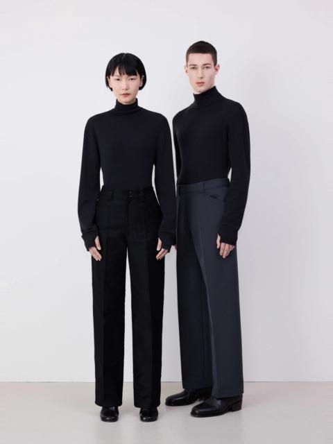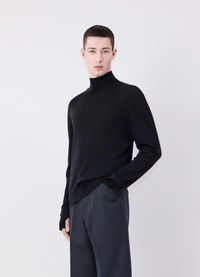 LEMAIRE's Seamless Turtle Neck Top is a new timeless essential. It is crafted in fine merino wool with a delicate and soft hand. Manufactured by EMO, a French textile clothing maker specialised in tubular knitwear, this classic style is woven into a flexible rib on the turtleneck and the hem to sit comfortably on the body. DETAILS - Relaxed fit - Turtleneck - Fine rib - Flexible rib at cuffs and hem Made in France Style: TO1280 LK1032 FABRICS & CARE Main Fabric: 100% Wool Hand wash Do not bleach Do not tumble dry Cool ironing Soft dry clean Dry flat