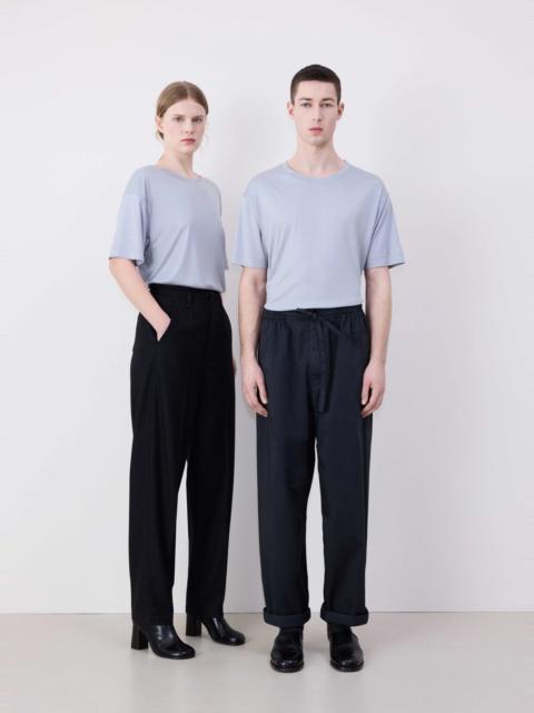 This unisex style is a staple in the LEMAIRE wardrobe. Reimagined this season in a heavy silk jersey with a soft and warm touch, this boxy T-shirt has round armholes for comfort and a single stitch detail along the hem and cuff. The round neck features a twin needle stitching detail. DETAILS - Boxy fit - Round neck - Short sleeves Made in Portugal Style: TO1295 LJ1026 FABRICS & CARE Main Material: 100% Silk Soft wash 30° Do not bleach Do not tumble dry Cool ironing Do not dry clean Dry flat