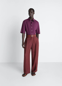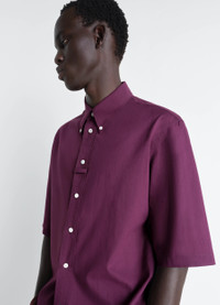 Inspired by LEMAIRE’s sense of comfort and sophistication, this classic shirt is made from refined washed cotton muslin. It features a button-down collar and a small loop on the front placket. The model is 187 cm tall and wears a size 48 (M). Inspired by LEMAIRE’s sense of comfort and sophistication, this classic shirt is made from refined washed cotton muslin. It features a button-down collar and a small loop on the front placket. The model is 187 cm tall and wears a size 48 (M). DETAILS Short-sleeved shirt in washed cotton muslin Fitted cut Button-down collar Short sleeves Button closure with small loop tab on front placket Made in Tunisia Style: SH1249 LF1389 Short-sleeved shirt in washed cotton muslin Fitted cut Button-down collar Short sleeves Button closure with small loop tab on front placket Made in Tunisia Style: SH1249 LF1389 CARE Main fabric: 100% wool Second fabric: 100% cotton Main lining: 51% cotton, 49% viscose Soft wash 30° Do not bleach Do not tumble dry Cool ironing Soft dry clean Main fabric: 100% wool Second fabric: 100% cotton Main lining: 51% cotton, 49% viscose Soft wash 30° Do not bleach Do not tumble dry Cool ironing Soft dry clean