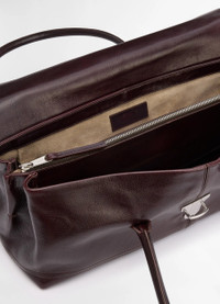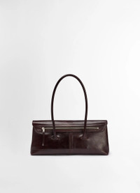 The new Shoulder Gear bag offers a new take on the the classic Gear family, introduced by LEMAIRE in 2024. It is crafted in glossy vegetable nappa leather with a soft and delicate hand. This elegant, vintage-inspired style is lined with suede and can be worn over the shoulder or as a handbag. It will comfortably contain small essentials such as a phone, a small book or a wallet. DETAILS This bag can be carried by the hand or on the shoulder Length: 37cm Width: 17cm Depth: 17cm Made in Spain Style: BG0148 LL0067 FABRICS & CARE Main material: 100% cow Main lining : 100% cow Do not wash Do not bleach Do not tumble dry Do not iron Professional leather clean only