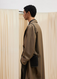 This bag is part of the new Calepin line of accessories enriching LEMAIRE’s wardrobe. It is made of box calfskin leather, a renowned fabric certified LWG Silver, with a shiny finish. The Small Calepin bag is a nod to the literary world as its vertical format refers to a book bag and can easily welcome daily essentials such as a smartphone or a wallet. An adjustable strap allows the bag to be worn on the shoulder or cross-body. DETAILS - Adjustable shoulder strap - Height of the strap: 51 cm / 20-inch / Length: 11,5 cm / 4,5-inch / Width: 18 cm / 7-inch / Depth: 5,5 cm / 2,2-inch - Magnetic double closure - Two main compartments (can contain a smartphone or a wallet) - Back flap pocket - Nappa contrasted leather lining - Silver logo embossed Made in Spain Style: BG0097 LL0069 FABRICS & CARE Main material: 100% Calf Main lining: 100% Lamb Do not wash Do not bleach Do not tumble dry Do not iron Professional leather clean only
