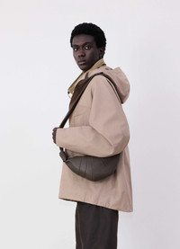 This classic LEMAIRE bag is part of the iconic Croissant family. The Small Croissant is made of soft grained leather, a supple yet resistant fabric. Its distinctive surface adds a tactile element and contributes to the durability of the bag’s curve. Inspired by the shape of the croissant pastry, its design is achieved through an assembly of top-stitched cutouts, blending style and functionality. It also features a matching looped zip puller and side knot finishings. The Small Croissant has the capacity for small accessories such as a smartphone, a card holder and a wallet. This versatile style can be worn over the shoulder or cross-body. DETAILS - This bag can be worn on the shoulder or cross-body - Height of the shoulder strap: 43cm / 17in - Length: 35cm / 14in - Width: 16cm / 6in - Depth: 5cm / 2in - Lining in cotton canvas - Metal Looped zip puller - Small interior patch pocket (can contain cards, small keys or a public transportation pass) - Main compartment (can contain smartphone, card holder, Airpods Pro 2 case and wallet) - Side knot finishings - Embossed logo inside Made in Spain Style: BG0003 LL0018 FABRICS & CARE - Main Material: 100% Cowhide Leather - Main Lining: 100% Cotton - Do not wash - Do not bleach - Do not tumble dry - Do not iron - Professional leather clean only