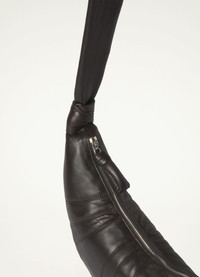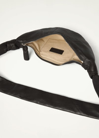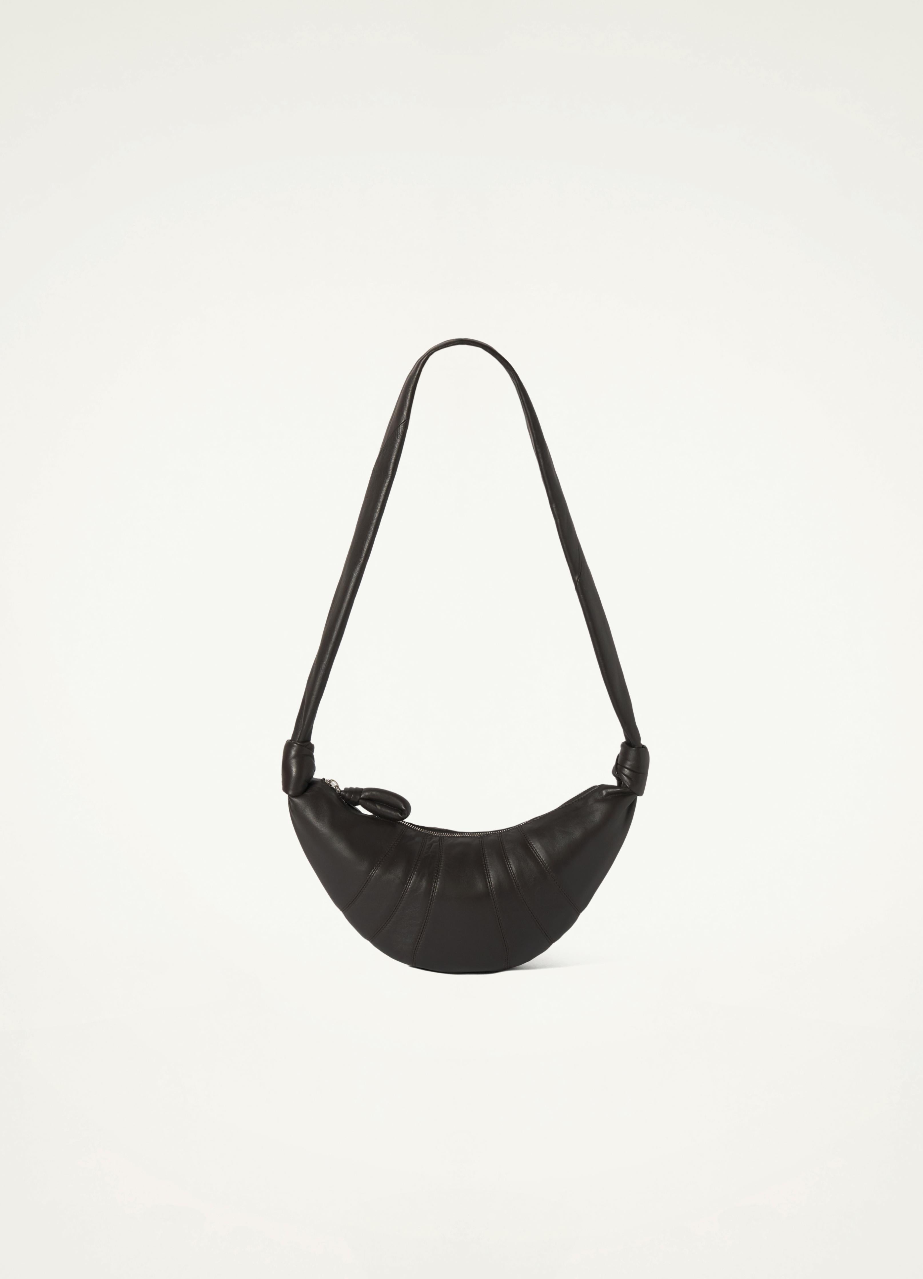 This classic LEMAIRE bag, the smallest of the Croissant family, is made of smooth nappa leather with a soft touch. Inspired by the shape of a croissant pastry, the bag's design is achieved through an assembly of topstitched cutouts. It features a matching looped zip puller, side knot finishings, as well as an inside pouch made of the same leather. The bag can be worn on the shoulder or as a crossbody bag. DETAILS Cotton canvas lining Metal zip Made in Spain Style : BG0003 LL095 FABRICS & CARE Main Fabric : 100% Lamb Main Lining : 100% Coton Do not wash
