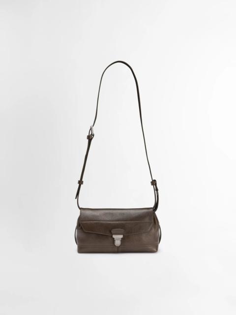 This unisex bag is part of the Gear line, a recent addition to LEMAIRE’s family of accessories. Blending functionality and elegance, its design borrows codes and details from vintage tool bags with a modern twist. The Small Gear bag is made from smooth irregular grained vegetable-tanned leather with a shiny finish - and an LWG Gold certification. It can fit small accessories such as a wallet, a card holder or a smartphone, protected by a zipped closure. An adjustable and removable strap crossing the inside of the bag allows it to be worn in different ways: as a bumbag, on the shoulder or cross-body. DETAILS - Suede lining - Adjustable shoulder handle - Removable leather strap crossing the inside of the bag - Height of the strap: 37cm / 14,5-inch - Length: 30cm / 12-inch - Width: 16cm / 6,3-inch - Depth: 10cm / 4-inch - Main compartment zip closure (can contain accessories such as a smartphone) - Logo embossed Made in Spain Style: BG0084 LL0067 FABRICS & CARE Main Material : 100% Cow Main Lining : 100% Cow Do not wash Do not bleach Do not tumble dry Do not iron Professional leather clean only
