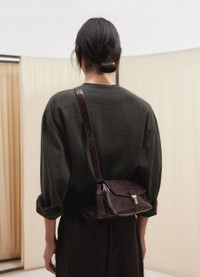 This unisex bag is part of the Gear line, a new addition to LEMAIRE’s family of accessories. Blending functionality and elegance, its design borrows codes and details of vintage tool bags with a modern twist. The Small Gear bag is made of a smooth irregular grained vegetable-tanned leather with a shiny finish. It can fit small accessories such as a wallet, a card holder or a smartphone, protected by a zipped closure. An adjustable and removable strap crossing the inside of the bag allows it to be worn in different ways: as a bumbag, on the shoulder or cross-body. DETAILS - Suede lining - Adjustable shoulder handle - Removable leather strap crossing the inside of the bag - Height of the strap: 37 cm / 14,5-inch - Length: 30 cm / 12-inch - Width: 16 cm / 6,3-inch - Depth: 10 cm / 4-inch - Main compartment zip closure (can contain accessories such as a smartphone) - Logo embossed Made in Spain Style: BG0084 LL0067 FABRICS & CARE Main Material: 100% Cow Main Lining: 100% Cow Do not wash Do not bleach Do not tumble dry Do not iron Professional leather clean only