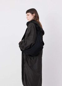 This unisex bag is part of the Soft Game bag family. The Small Soft Game is made of a slightly fluffy-nylon canvas treated with a water-repellent finish - GRS certified. Its wadded fabric gives the bag a matte surface and a sturdy structure which holds its shape over time. Inspired by the Croissant bag, it is lightweight yet functional thanks to its padded adjustable strap and its interior zipped pocket. It has the capacity for accessories such as a smartphone or a 4x7-inch book. On both sides of the bag, embroidered eyelets and laces allow its volume to be adapted. Ideal for daily use, this style can be worn as a shoulder or a cross-body bag. DETAILS WR NYLON CANVAS FABRICS & CARE Main Fabric : 100% Polyamide/Nylon Main Lining : 100% Polyamide/Nylon Do not wash Do not bleach Do not tumble dry Do not iron Professional cleaner only
