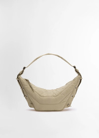 This unisex bag is part of the Soft Game bag family. The Small Soft Game is made of a slightly fluffy-nylon canvas treated with a water-repellent finish - GRS certified. Its wadded fabric gives the bag a matte surface and a sturdy structure which holds its shape over time. Inspired by the Croissant bag, it is lightweight yet functional thanks to its padded adjustable strap and its interior zipped pocket. It has the capacity for accessories such as a smartphone or a 4x7-inch book. On both sides of the bag, embroidered eyelets and laces allow its volume to be adapted. Ideal for daily use, this style can be worn as a shoulder or a cross-body bag. DETAILS - This bag can be worn on the shoulder or cross-body - Height of the shoulder strap: 60cm / 24in - Length: 52cm / 20,5in - Width: 19cm / 7,5in - Depth: 13cm / 5in - Lining in nylon - Adjustable nylon strap with metal buckle - Zipped opening with puller from the same fabric - Interior zipped patch pocket (can contain small accessories: card holder or Airpods Pro 2 case) - Main compartment (can contain small accessories: smartphone, wallet) - Garment dyed - Water-repellent finishes keep rain and splashes out, but are not waterproof Made in Italy Style: BG293 LF1330 FABRICS & CARE Main Material: 100% Polyamide/Nylon Main Lining: 100% Polyamide/Nylon Do not wash Do not bleach Do not tumble dry Do not iron Professional leather clean only