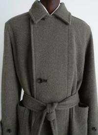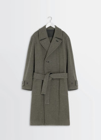 This supple coat is inspired by the trench coat, reinterpreted here in a rich, warm fabric. The wool and alpaca blend gives it texture and relief as well as lightness. This unlined piece is finished with a herringbone ribbon trim.The model is 187 cm tall and is wearing a size 48 (M). DETAILS Supple coat in a wool and alpaca blend Oversized cut Supple unlined model Tailored collar with buttonhole and under-button collar Long sleeves finished off with adjustable button tabs Double-breasted button closure Patch side pockets Belt loops at the back Matching removable belt Buttoned back vent Piped buttonholes Herringbone ribbon trim Inside patch pockets Made in Romania Style : CO1135 LF504 FABRICS & CARE Main Material: 50% Wool 50% Alpaca Main Lining: 100% Cotton Do not wash Do not bleach Do not tumble dry Cool ironing Soft dry clean