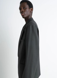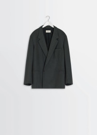 This double-breasted tailored jacket is made from a tropical wool-blend suiting fabric characterized by its mottled appearance and dense, supple hand. This piece is part of a desire to deconstruct the garment and reinterpret the world of the traditional tailoring by giving it greater suppleness. The model is 187 cm tall and is wearing a size 48 (M). This double-breasted tailored jacket is made from a tropical wool-blend suiting fabric characterized by its mottled appearance and dense, supple hand. This piece is part of a desire to deconstruct the garment and reinterpret the world of the traditional tailoring by giving it greater suppleness. The model is 187 cm tall and is wearing a size 48 (M). DETAILS Double-breasted suit jacket in tropical wool blend Straight cut Fully lined model Tailored collar with buttonhole and under-button collar Long sleeves Chest pockets Welted side pockets Welted inside pockets, including one buttoned Interior strap with buttonhole for crossbody wear Made in Slovakia Style : JA1063 LF414 The model is 187 cm tall and is wearing a size 48 (M). Double-breasted suit jacket in tropical wool blend Straight cut Fully lined model Tailored collar with buttonhole and under-button collar Long sleeves Chest pockets Welted side pockets Welted inside pockets, including one buttoned Interior strap with buttonhole for crossbody wear Made in Slovakia Style : JA1063 LF414 The model is 187 cm tall and is wearing a size 48 (M). CARE Main Material: 55% Polyester 45% Wool Main Lining: 51% Cotton 49% Viscose Second Lining: 100% Cotton Do not wash Do not bleach Do not tumble dry Cool ironing Soft dry clean Main Material: 55% Polyester 45% Wool Main Lining: 51% Cotton 49% Viscose Second Lining: 100% Cotton Do not wash Do not bleach Do not tumble dry Cool ironing Soft dry clean