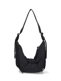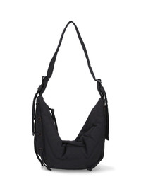 LEMAIRE 'SOFT GAME' SHOULDER BAG IN DARK BROWN FABRIC WITH ADJUSTABLE TOP HANDLE, ZIP CLOSURE, QUILTED PATTERN, SIDE LACES, INNER ZIP POCKET, SINGLE MAIN INNER COMPARTMENT. PRODUCT INFO PRODUCT CODE BG293 LF1330BR490 COMPOSITION: 100% POLYAMIDE SIZE AND FIT: H 18 X W 42 X D 9 CM MADE IN: ITALY - HANDLE SPAN: 40 - 60 CM