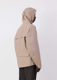 The Soft Technical Parka is a new addition to the LEMAIRE vestiaire. It is crafted in cotton poplin with an inside membrane. This fabric is finished with a water-repellent treatment to protect against the rain. The half kimono silhouette features two welt pockets on the front and a back pocket, all closing via a waterproof zip. The pivot sleeves allow ample movement, and there is a drawcord system with adjusters to cinch in the silhouette. Other utilitarian details include a peaked hood to keep the rain off and an inner waterproof tape at the seams to fully protect the body. DETAILS - Relaxed fit - Waterproof pockets and seams - Pivot sleeves - Peaked hood - Adjustable hem Made in Romania Style: OW1095 LF1294 FABRICS & CARE Main Fabric: 100% Cotton Main Lining: 100% Cotton Do not wash Do not bleach Do not tumble dry Cool ironing Soft dry clean