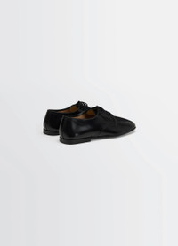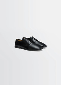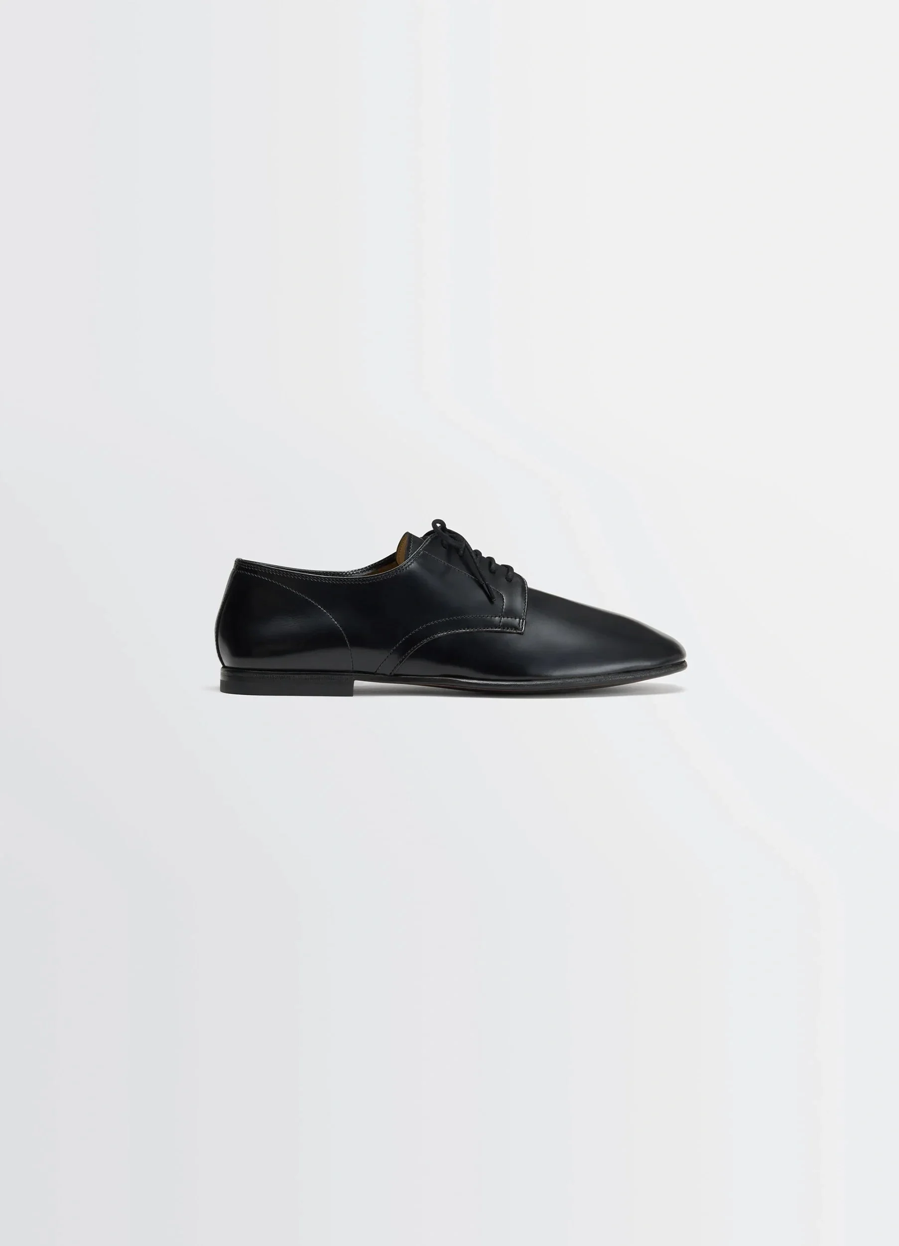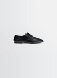 Inspired by the dance shoe, this pair of derbies is in keeping with Lemaire's taste for the link between comfort and elegance. This model is made from supple calf leather, certified LWG Silver, with a smooth, shiny appearance. Lightweight and flexible, it's ideal for everyday wear. Inspired by the dance shoe, this pair of derbies is in keeping with Lemaire's taste for the link between comfort and elegance. This model is made from supple calf leather, certified LWG Silver, with a smooth, shiny appearance. Lightweight and flexible, it's ideal for everyday wear. DETAILS Soft calfskin leather derbies Elongated square toe Lace-up closure with waxed cotton laces Tone-on-tone topstitched detailing Leather insoles and outsoles Made in Portugal Style: FO0234 LL0157 Soft calfskin leather derbies Elongated square toe Lace-up closure with waxed cotton laces Tone-on-tone topstitched detailing Leather insoles and outsoles Made in Portugal Style: FO0234 LL0157 CARE Main material: 100% calf If exposed to water or high humidity, dry your shoes well with an absorbent cloth and let them air dry before storing them. Smooth leather: Use a soft cloth and apply a measured amount of uncolour milk or cream. Suede leather: Brush lightly with a sponge or special suede cloth. Main material: 100% calf If exposed to water or high humidity, dry your shoes well with an absorbent cloth and let them air dry before storing them. Smooth leather: Use a soft cloth and apply a measured amount of uncolour milk or cream. Suede leather: Brush lightly with a sponge or special suede cloth.