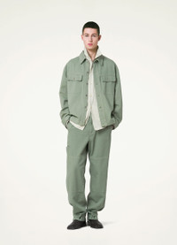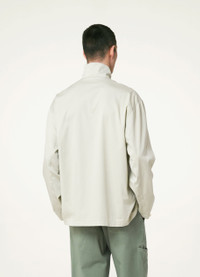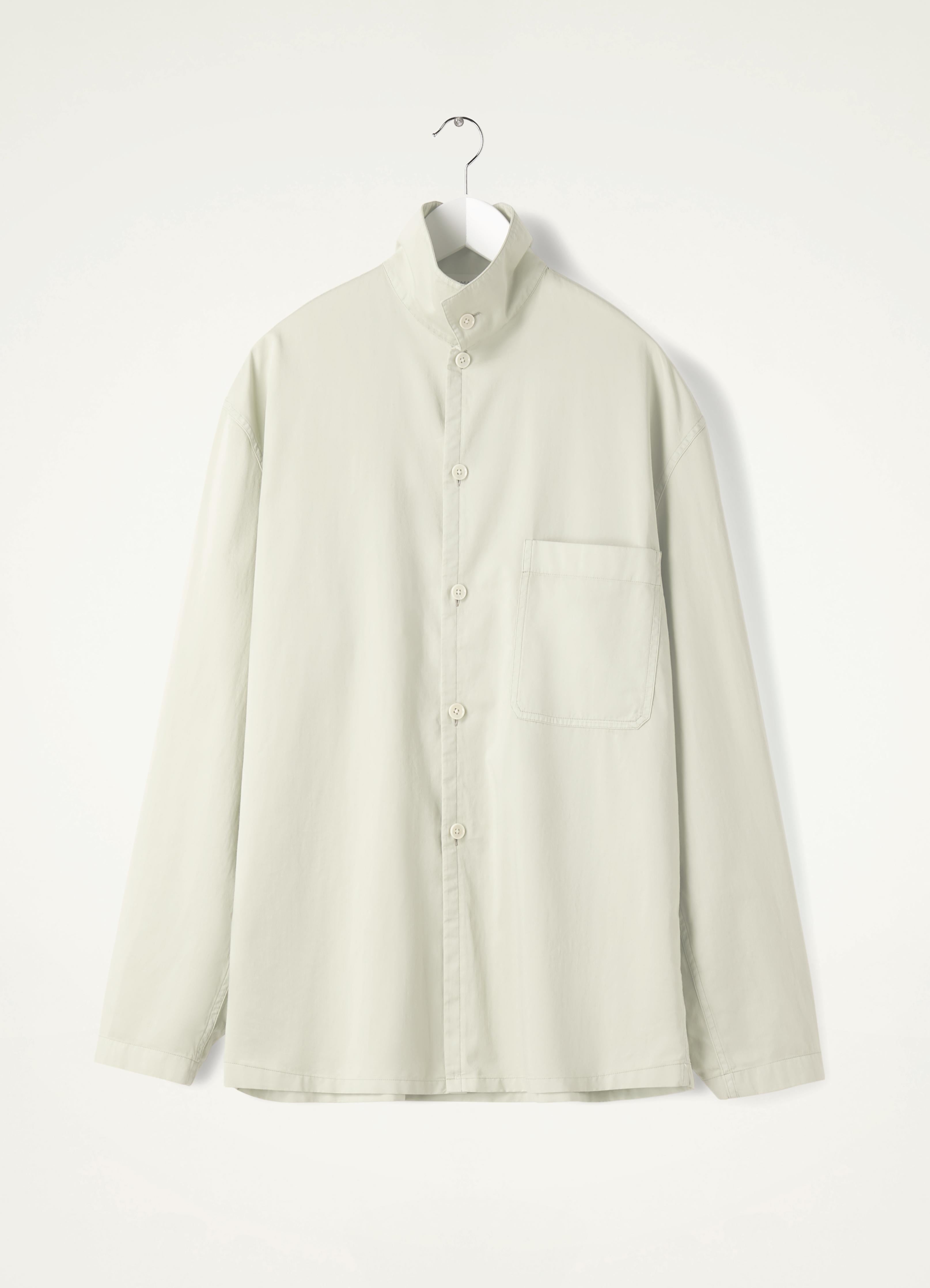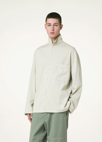 This shirt is made of a light cotton and satin blend that has been garment-dyed, softening its hand. It has a boxy fit with a soft construction and a convertible stand collar. Other details include a chest patch pocket, a French placket, and a button on the sleeves that can be adjusted to create a single pleat. DETAILS Boxy fit Convertible stand collar Corozo buttons Topstitched French placket-One chest patch pocket Made in Romania Style : SH1056 LF1130 This model is 190 cm and is wearing a size 48/M FABRICS & CARE Main Fabric : 100% Coton Soft wash 30° Do not bleach Do not tumble dry Cool ironing Soft dry clean