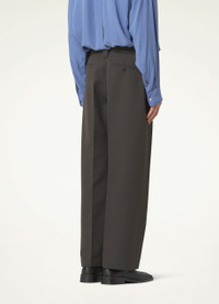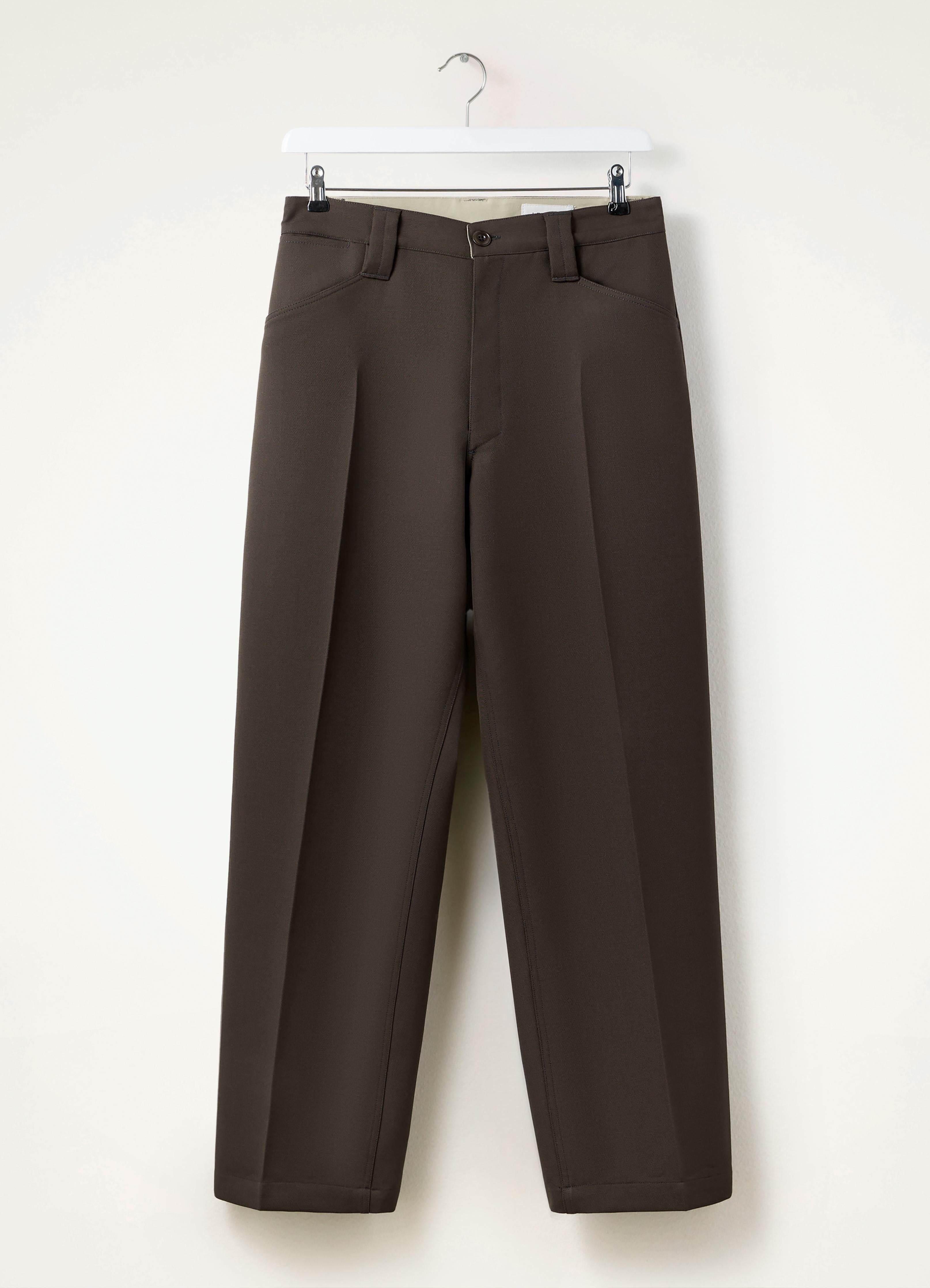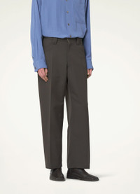 These pants are made of poly-wool woven into a mélange twill, with a dense yet supple hand. They have a straight, seamless construction accentuated by pressed creases. They feature five pockets including a ticket pocket. DETAILS Straight fit Corozo buttons Mid rise Zip fly Belt loops Two slanted side pockets Two back welt pockets Made in Bulgaria Style : PA1076 LF483 This model is 187 cm and is wearing a size 48/M FABRICS & CARE Main Fabric : 67% Polyester, 33% Wool Main Lining : 100% Coton Second Lining : 100% Coton Do not wash Do not bleach Do not tumble dry Cool ironing Soft dry clean