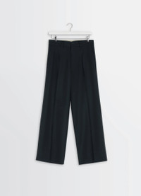 These pleated pants are in the spirit of traditional tailoring. They are made from a wool-blend suit fabric. With a characteristic twill weave, they are both dense and supple.The model is 187 cm tall and is wearing a size 48 (M). DETAILS Straight-leg tailored pants in wool-blend twill Belt loops at the waistband Closure with hook, button, and hidden zipper Italian side pockets Distinct front and black pleats Welted back pockets Made in Romania Style : PA1253 LF1048 The model is 187 cm tall and is wearing a size 48 (M). FABRICS & CARE Main Material: 55% Polyester 45% Wool Main Lining: 100% Cotton Do not wash Do not bleach Do not tumble dry Cool ironing Soft dry clean