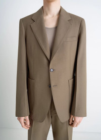 This tailored jacket is in the spirit of traditional tailoring. It is made from a wool-blend suiting fabric. With a characteristic twill weave, it is both dense and supple. The model is 187 cm tall and is wearing a size 48 (M). This tailored jacket is in the spirit of traditional tailoring. It is made from a wool-blend suiting fabric. With a characteristic twill weave, it is both dense and supple. The model is 187 cm tall and is wearing a size 48 (M). DETAILS Single-breasted tailored jacket in a wool twill blend Straight cut Fully lined model Tailored collar Structured shoulders with slim shoulder pads Long sleeves with distinct pleats Chest pocket Patch side pockets Back vent Welted inside pockets, including one buttoned Made in Itlay Style : JA1084 LF1048 The model is 187 cm tall and is wearing a size 48 (M). Single-breasted tailored jacket in a wool twill blend Straight cut Fully lined model Tailored collar Structured shoulders with slim shoulder pads Long sleeves with distinct pleats Chest pocket Patch side pockets Back vent Welted inside pockets, including one buttoned Made in Itlay Style : JA1084 LF1048 The model is 187 cm tall and is wearing a size 48 (M). CARE Main Material: 55% Polyester 45% Wool Main Lining: 100% Polyester Second Lining: 100% Cotton Do not wash Do not bleach Do not tumble dry Cool ironing Soft dry clean Main Material: 55% Polyester 45% Wool Main Lining: 100% Polyester Second Lining: 100% Cotton Do not wash Do not bleach Do not tumble dry Cool ironing Soft dry clean