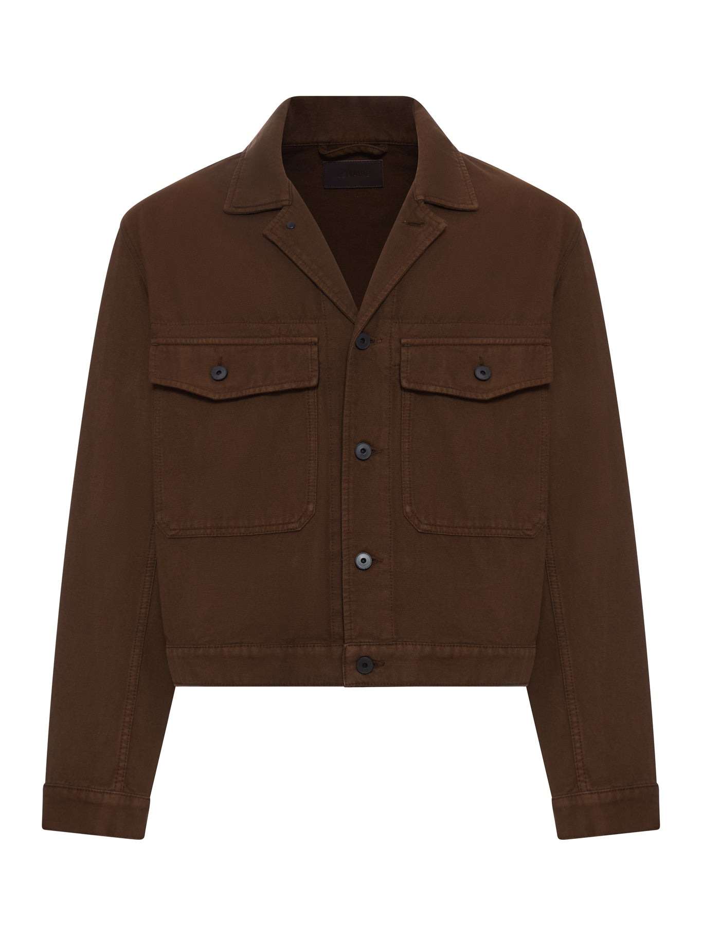 - Broken twill trucker jacket - ??Straight fit - Pointed collar - Button closure - Long sleeves - Buttoned cuffs - Patch chest pockets with flaps - Leather label with embossed LEMAIRE logo inside the collar - Color: Cocoa Made in Morocco Composition: Cotton 100% cotton Color code: BR423 CACAO OW1188LD1067