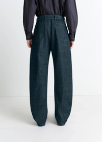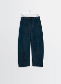 These belted Twisted pants are a classic Lemaire wardrobe staple, with their twisted seams giving a rounded shape to the leg and removable belt. They are made from thick garment-dyed denim, a Lemaire wardrobe staple, in a deep indigo wash. The models are 177 cm and 187 cm and are wearing sizes 36 (S) and 48 (M). We recommend a size down These belted Twisted pants are a classic Lemaire wardrobe staple, with their twisted seams giving a rounded shape to the leg and removable belt. They are made from thick garment-dyed denim, a Lemaire wardrobe staple, in a deep indigo wash. The models are 177 cm and 187 cm and are wearing sizes 36 (S) and 48 (M). We recommend a size down DETAILS Twisted belted pants in heavy indigo denim Regular fit Belt loops at the waistband Matching removable belt with metal buckle Closure with hook, button, and hidden zipper Side seam pockets Twisted seams Lemaire embossed leather jacron at the back Back patch pockets Contrast topstitching we recommend a size down Made in Italy Style : PA326 LD1056 Twisted belted pants in heavy indigo denim Regular fit Belt loops at the waistband Matching removable belt with metal buckle Closure with hook, button, and hidden zipper Side seam pockets Twisted seams Lemaire embossed leather jacron at the back Back patch pockets Contrast topstitching we recommend a size down Made in Italy Style : PA326 LD1056 CARE Main Material: 100% Cotton Main Lining: 65% Polyester 35% Cotton Jacron: 100% Cow Leather Soft wash 30° Do not bleach Do not tumble dry Cool ironing Soft dry clean Wash upside down Main Material: 100% Cotton Main Lining: 65% Polyester 35% Cotton Jacron: 100% Cow Leather Soft wash 30° Do not bleach Do not tumble dry Cool ironing Soft dry clean Wash upside down