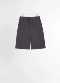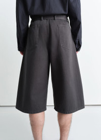 These shorts are a new member of the iconic LEMAIRE Twisted family. They are crafted in garment dyed heavy denim, a signature LEMAIRE fabric with a thick, round hand, a visible twill weave and a deep carbon blue wash. The Twisted Shorts share some of the Twisted characteristics: their side seams are slightly twisted giving the leg a curved shape. Details also include two side pockets, two back patch pockets and a matching belt with a metal buckle to adjust the waist. DETAILS Regular fit Matching belt with metal buckle Belt loops Two back patch pockets Two side seam pockets Curved seams at the leg Zip fly Made in Morocco Style: PA1107 LD1039 FABRICS & CARE Main Fabric: 100% Cotton Main Lining: 100% Cotton