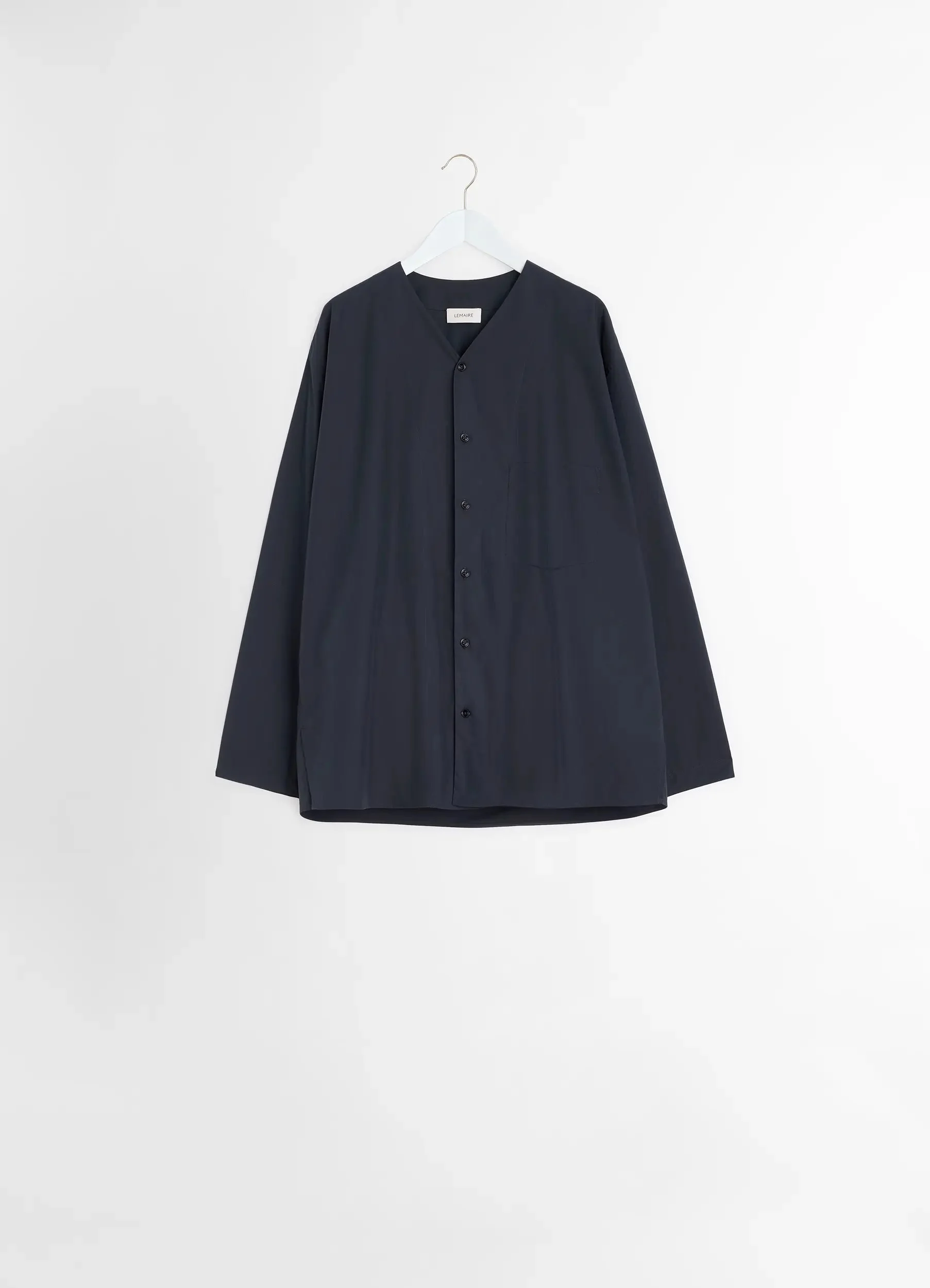 The Relaxed V-Neck Shirt is crafted in cotton poplin, a light and airy material with a soft and fluid hand. It seamlessly blends classic and contemporary styles. It features a high V neckline with a button-down front and workwear-inspired cuffs, each adorned with two corozo buttons for added detail. A single welt pocket on the chest enhances practicality, while the curved hem with side slits offers a modern silhouette. Crafted for comfort and versatility, this shirt is perfect for layering or wearing on its own. DETAILS - Relaxed shit - V-neck - Patch pocket - Buttoned cuffs - Corozo buttons Made in Tunisia Style: SH1144 LF588 FABRICS & CARE Main Fabric: 100% Cotton Soft wash 30° Do not bleach Do not tumble dry Cool ironing Soft dry clean