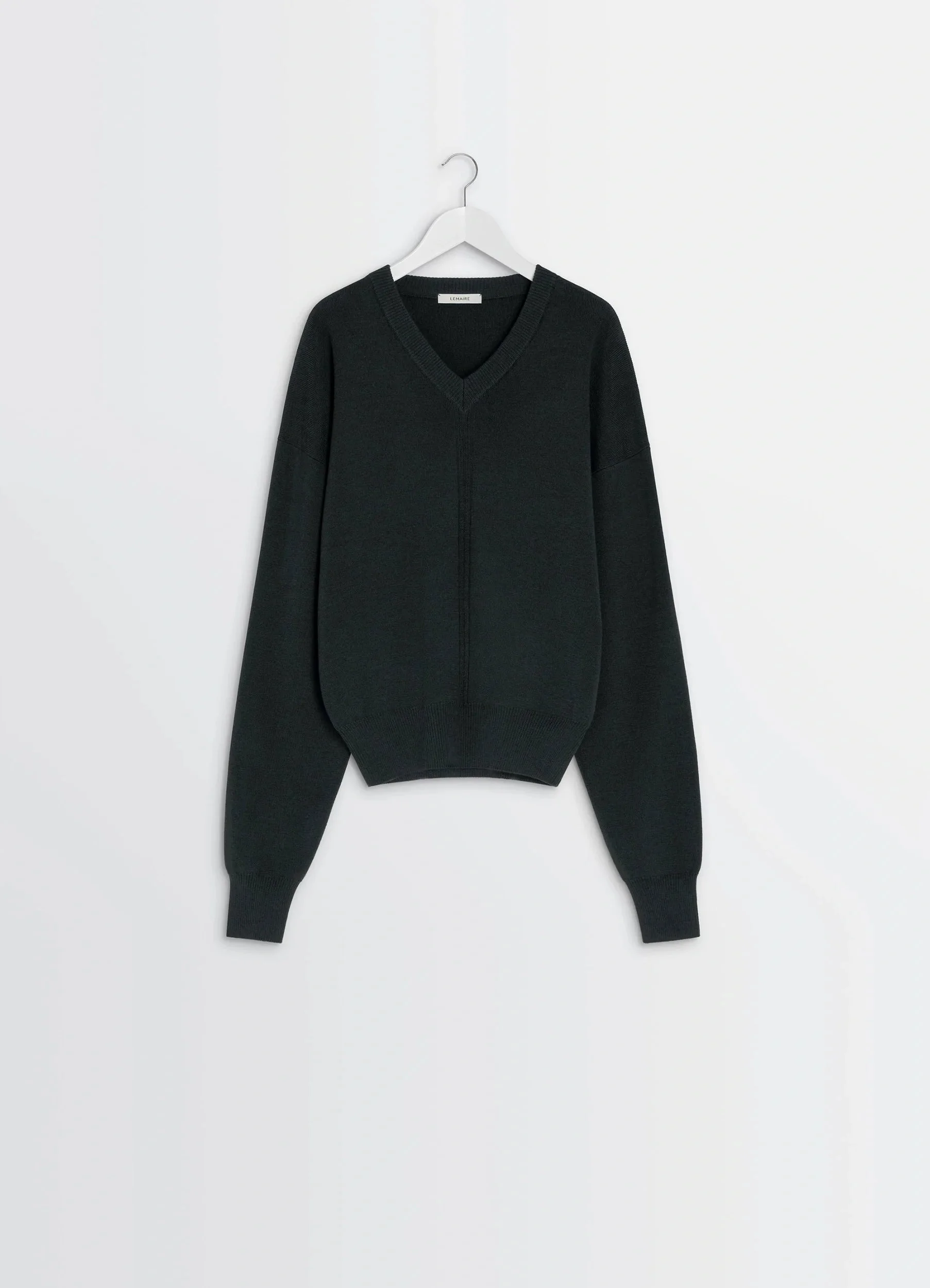 This V-neck sweater is a Lemaire wardrobe essential. It is knitted in a blended merino wool that is both dry and soft. The model is 187 cm tall and is wearing a size 48 (M). DETAILS V-neck sweater in merino wool blend Straight cut Long sleeves Rib-knit trim Made in Portugal Style : TO1430 LK087 CARE Main Material: 50% Acrylic 50% Wool Hand wash Do not bleach Do not tumble dry Cool ironing Soft dry clean Dry flat