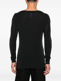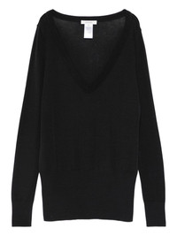 V-neck top Highlights - Black - Fine knit - V-neck - Long sleeves Made in France Composition Wool 100% SIZE & FIT Model measurements Height 6 ft 1 in(1.85 m) Bust/Chest 35.82 in(91 cm) Hips 37.79 in(96 cm) Waist 29.13 in(74 cm) Washing instructions Hand Wash