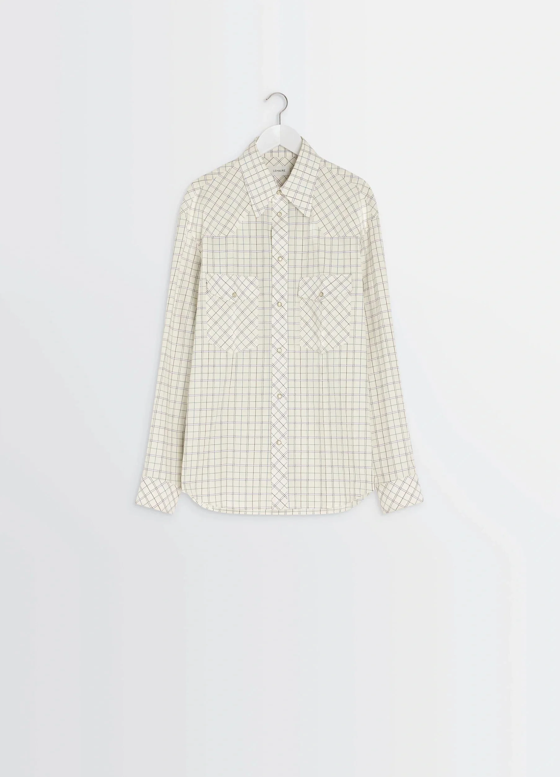 This western shirt features sophisticated details such as patch pockets, rivets, and metal-ringed pearlescent buttons. It is made from textured cotton plaid, a softly hand-structured fabric. The model is 187 cm tall and is wearing a size 48 (M). This western shirt features sophisticated details such as patch pockets, rivets, and metal-ringed pearlescent buttons. It is made from textured cotton plaid, a softly hand-structured fabric. The model is 187 cm tall and is wearing a size 48 (M). DETAILS Western shirt in textured and checkered cotton Straight cut Shirt collar Yoke at the shoulders Long sleeves Straight snap cuffs Front snap closure Chest patch pockets with snap flaps Flat pleat at the back Buttons circled in metal Made in Tunisia Style : SH1209 LF1503 The model is 187 cm tall and is wearing a size 48 (M). Western shirt in textured and checkered cotton Straight cut Shirt collar Yoke at the shoulders Long sleeves Straight snap cuffs Front snap closure Chest patch pockets with snap flaps Flat pleat at the back Buttons circled in metal Made in Tunisia Style : SH1209 LF1503 The model is 187 cm tall and is wearing a size 48 (M). CARE Main Material: 100% Cotton Soft wash 30° Do not bleach Do not tumble dry Cool ironing Soft dry clean Main Material: 100% Cotton Soft wash 30° Do not bleach Do not tumble dry Cool ironing Soft dry clean