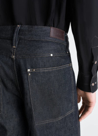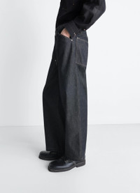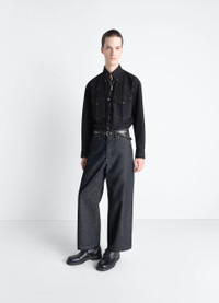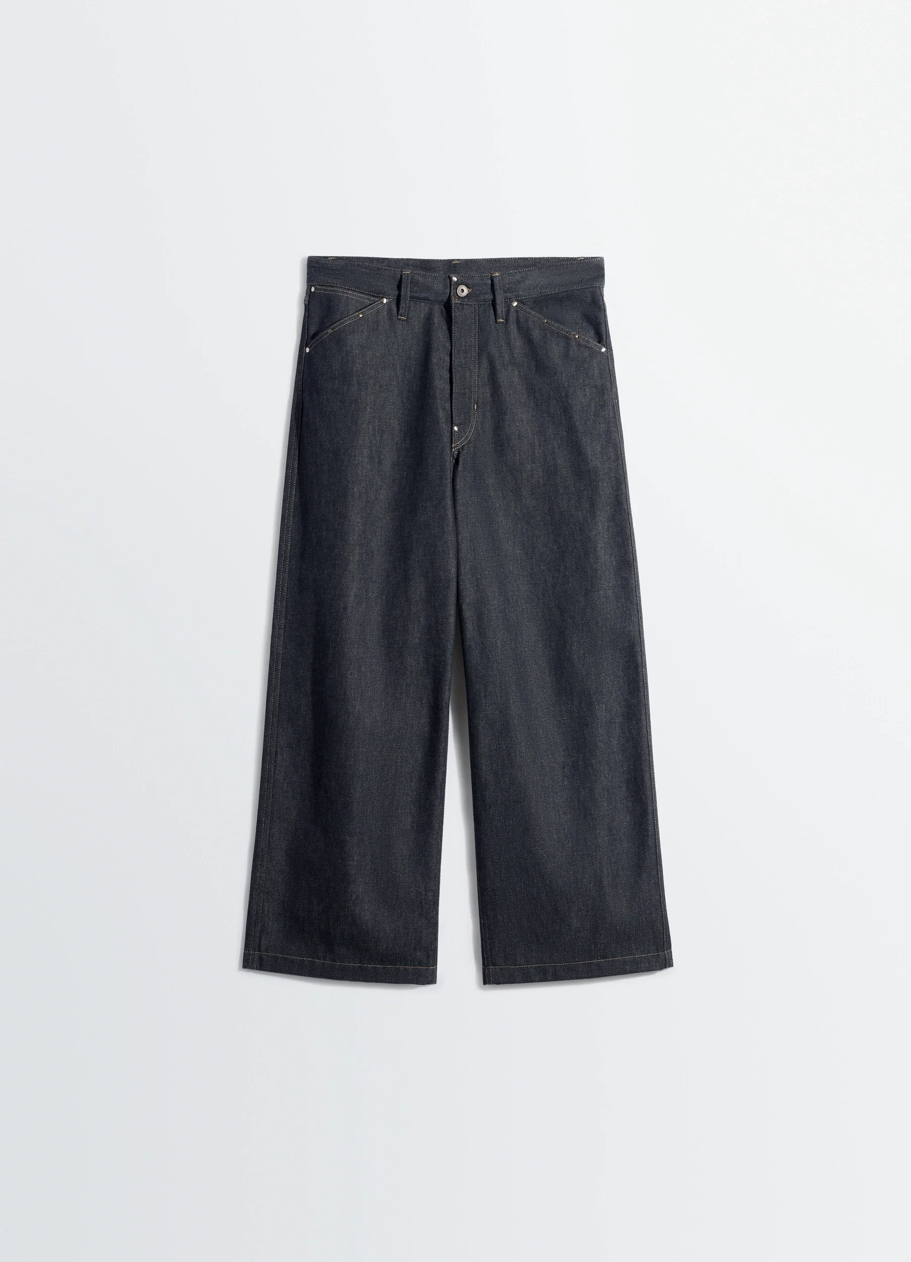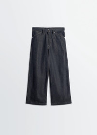 These wide-leg trousers reflect LEMAIRE’s approach to reinterpreting archetypal garments. This wardrobe essential is crafted from thick slate denim and features rivets of varying sizes and a refined finish. The model is 187 cm tall and wears a size 48 (M). These wide-leg trousers reflect LEMAIRE’s approach to reinterpreting archetypal garments. This wardrobe essential is crafted from thick slate denim and features rivets of varying sizes and a refined finish. The model is 187 cm tall and wears a size 48 (M). DETAILS Wide trousers in bleached slate denim with studs Oversized fit Waistband with belt loops Metal button and zip fly Side slant pockets with coin pocket and back patch pockets Rivet detailing LEMAIRE embossed leather patch at back Made in Italy Style: PA1288 LD1061 Wide trousers in bleached slate denim with studs Oversized fit Waistband with belt loops Metal button and zip fly Side slant pockets with coin pocket and back patch pockets Rivet detailing LEMAIRE embossed leather patch at back Made in Italy Style: PA1288 LD1061 CARE Main fabric: 100% cotton Jacron patch: 100% cow leather Do not wash Do not bleach Do not tumble dry Cool ironing Soft dry clean Main fabric: 100% cotton Jacron patch: 100% cow leather Do not wash Do not bleach Do not tumble dry Cool ironing Soft dry clean