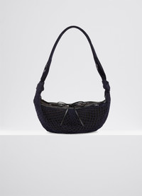The Croissant Filt marks the second collaboration between LEMAIRE and heritage company FILT, France’s oldest manufacturer of net shopping bags. This venture reinforces the brand's commitment to protect traditional craftsmanship while pushing house signatures into new territories. Entirely made in France, this style is an interpretation of the iconic Croissant bag. One can choose to wear the Croissant Filt either with or without the inside pouch, housed in the net bag via a soft Nappa leather drawstring. The removable nylon compartment can morph into its own separate entity: a mini handbag made in practical water-repelling nylon, closing with a shiny metal and leather 2-snap closure system. DETAILS - This bag can be worn on the shoulder, cross-body or by hand - Height of the main strap: 51cm / 20in - Length: 52cm / 20in - Width: 1cm / 0,4in - Depth: 30cm / 12in - Polyester net shell - Nappa leather drawstring closure - Removable inside pouch: two bags in one - Inside zip pocket - Water repellent nylon - 2-snap metal closure Made in France Style: BG0128 TP0006 FABRICS & CARE Main Fabric: 100% Polyester Main Lining: 100% Polyamide/Nylon Third Fabric: 100% Lamb Do not wash Do not bleach Do not tumble dry Do not iron Professional clean only