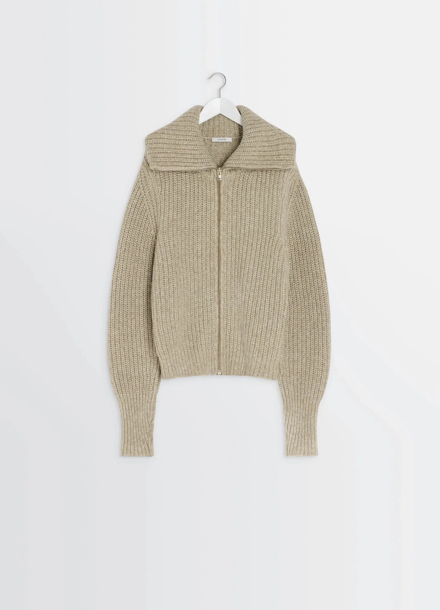 Crafted from a blend of alpaca and yak wool, a densely ribbed knit with a textured look, this zip-up cardigan with stand-up collar is designed as a true outdoor piece. The model is 187 cm tall and is wearing a size 48 (M). DETAILS Zipped cardigan in yak alpaca wool Straight cut Stand-up collar Long sleeves Cuffs with thumbhole Metal zipper closure Rib-knit trim Made in Italy Style : OW1187 LK1029 The model is 187 cm tall and is wearing a size 48 (M). CARE Main Material: 50% Alpaca 50% Yak Hand wash Do not bleach Do not tumble dry Cool ironing Soft dry clean Dry flat