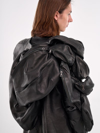 LEON EMANUEL BLANCK bag in black, handcrafted, asymmetric harness bag design, paneled horse leather construction, arm asymmetric zip pouches, snap-button strap fastenings, adjustable straps, front snap-buckle closure, sleeveless & armscyes, back draping & oversized zip pocket, logo-engraved silver-tone hardware, Cobrax buckles, fitted. Made in Germany 100% Horse Leather One Size