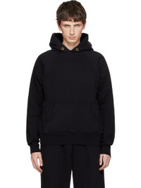 Heavyweight brushed cotton fleece hoodie. · Pre-shrunk and garment-dyed · Grommets at hood · Kangaroo pocket · Rib-knit hem and cuffs · Raglan sleeves Supplier color: Jet black 100% cotton. Made in United States 261548M202012