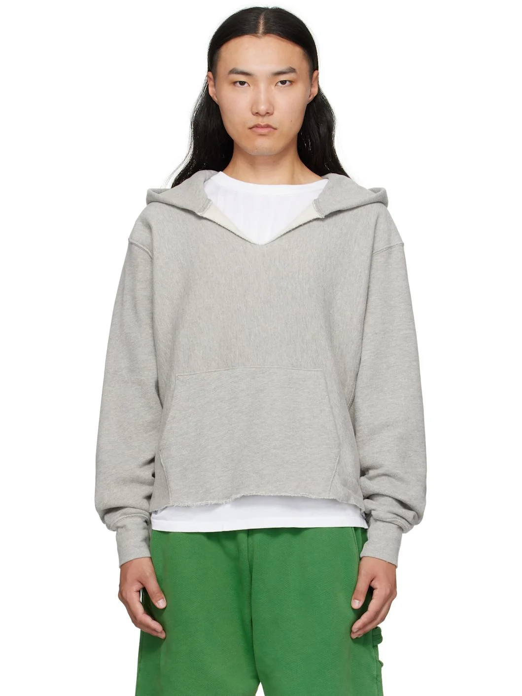Gray Heavyweight Raw Cropped Hoodie
