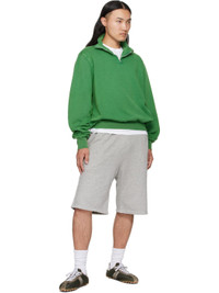 Heavyweight brushed cotton fleece shorts. · Pre-shrunk and garment-dyed · Concealed drawstring at elasticized waistband · Four-pocket styling · Hammer loop and patch pocket at outseam · Rolled raw edges at back pockets Supplier color: Heather grey 100% cotton. Made in United States 252548M193002